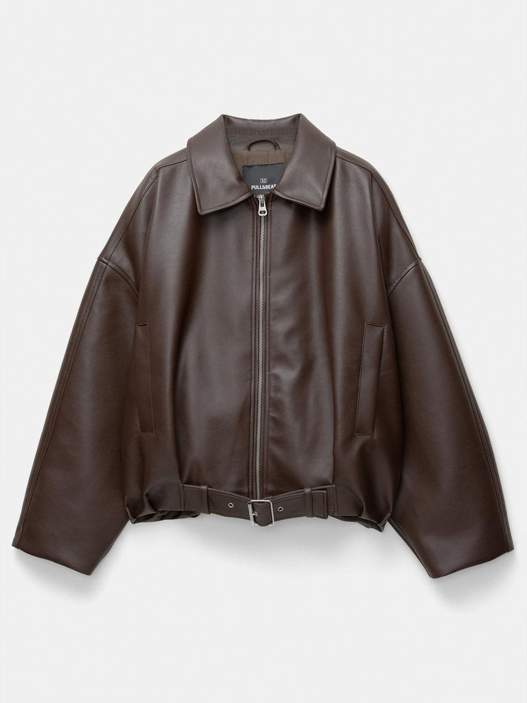 Elevate your outerwear game with this chic women's brown faux leather jacket. Featuring a classic collar and a smooth zip front, it exudes timeless style. The oversized silhouette offers a relaxed, trendy fit, while the detachable belt allows you to cinch the waist for a customized look – go for a loose, laid - back vibe or a more tailored appearance.