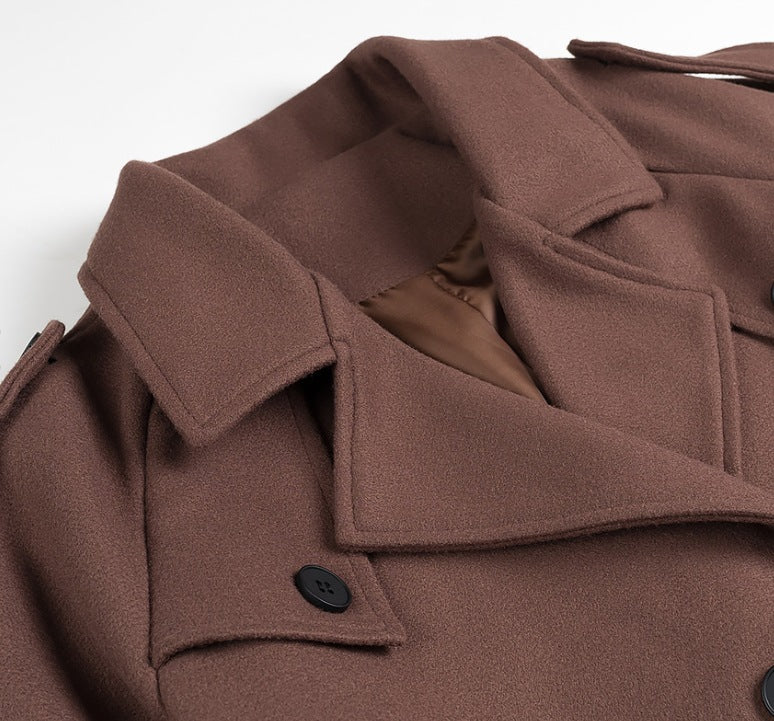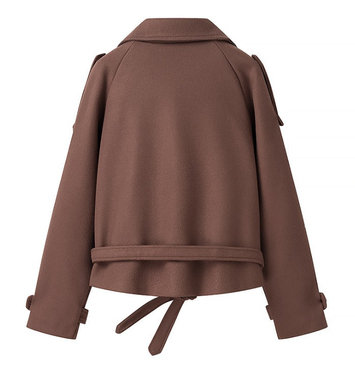 Arcthlexa Women's Double - Breasted Belted Short Trench Coat with Lapel Collar and Buckle Details