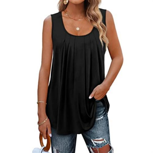3. summer sleeveless pleated tops U neck plus big Tank tops women loose fit camis Casual sleeveless crop tops Women blouse sleeveless U neck sleeveless tank top Curved Hem Flowy camisole tank tops sleeveless pleated Sleeveless crop tops for women Halter