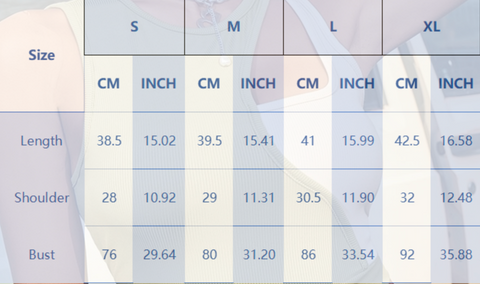 size guide 女性背心